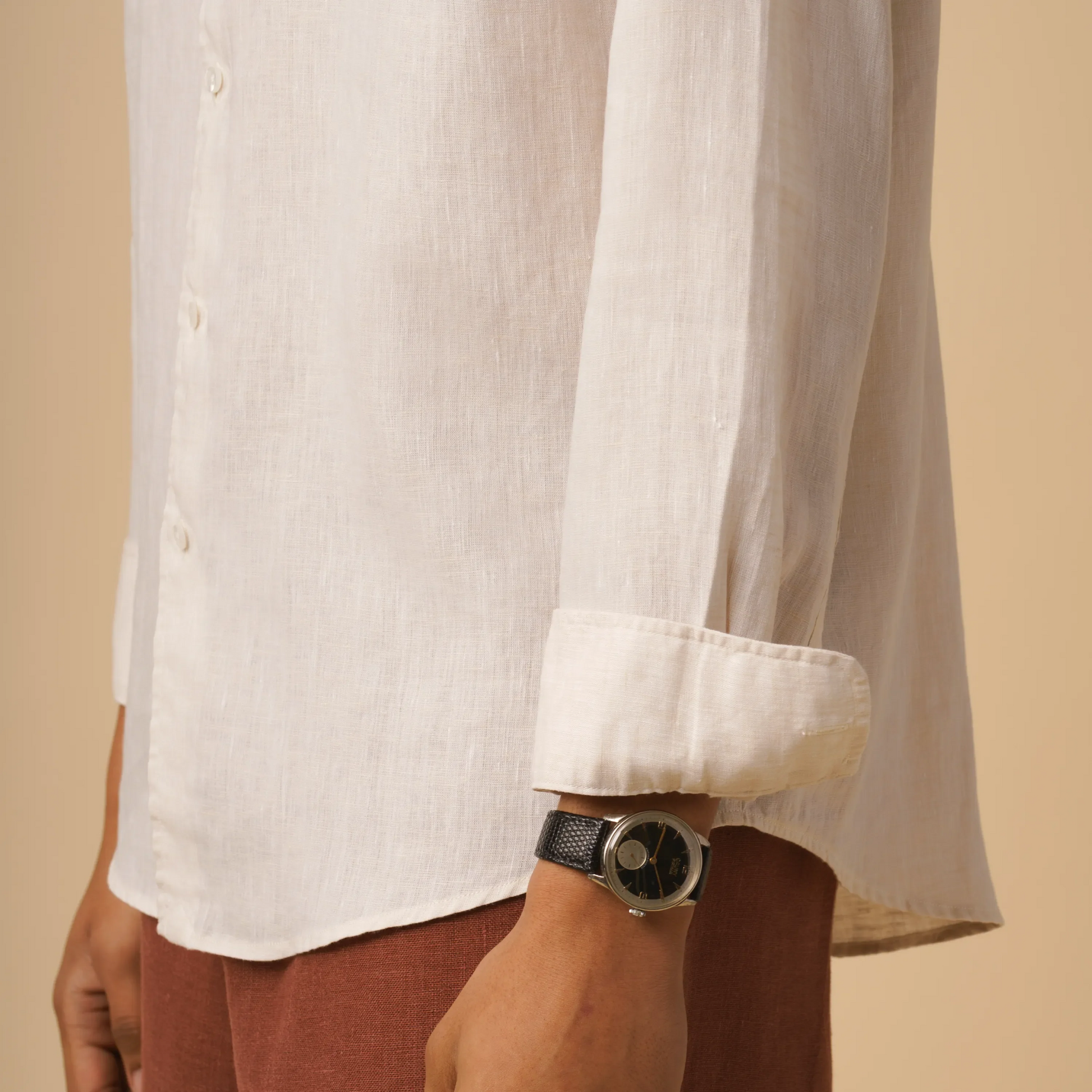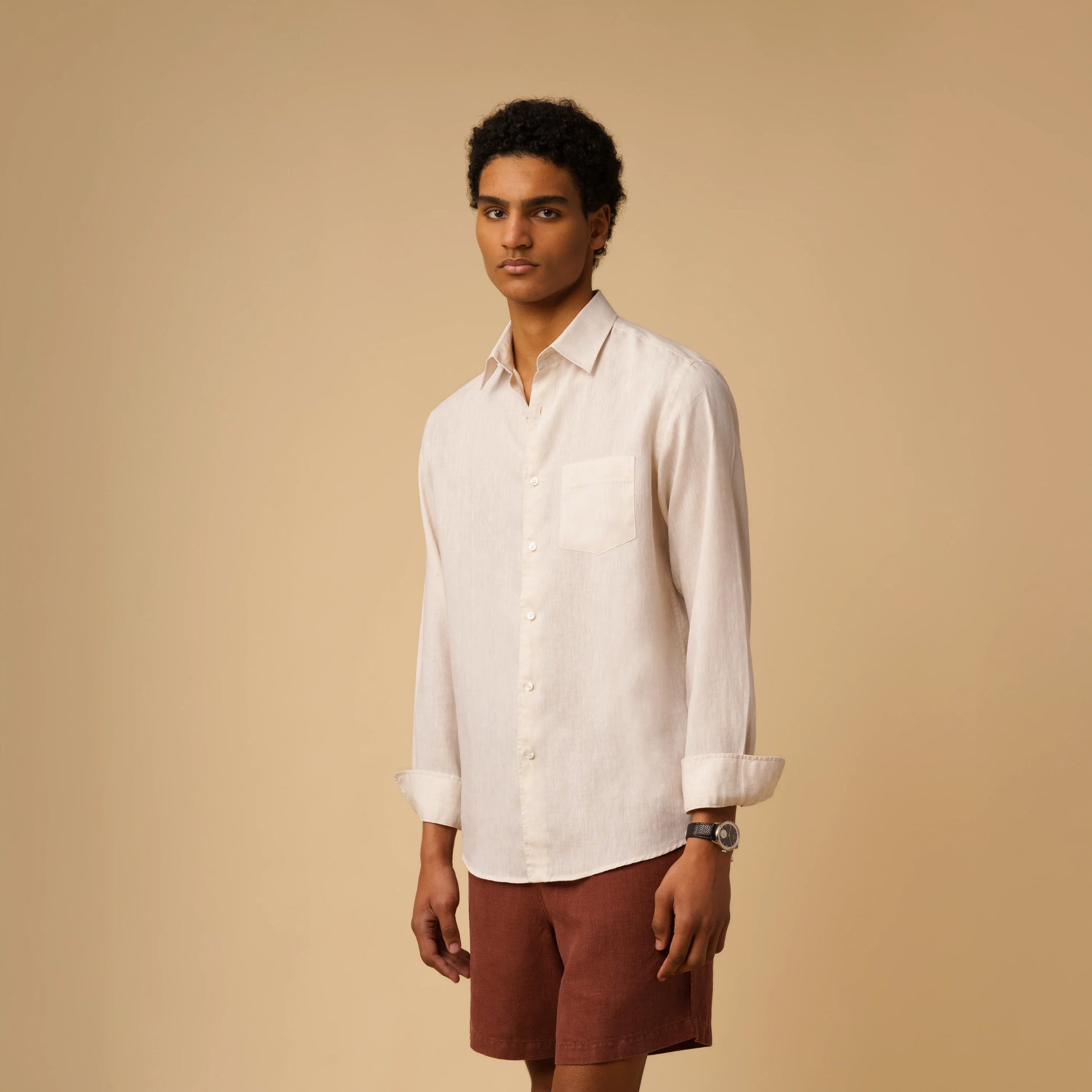 Cut from a premium 100% natural fabric, our Linen Shirt comes in a relaxed fit, a buttonless collar, custom bio resin buttons, and just the right shoulder length to get the sleeve height where it needs to be. Nailing it was far from simple, but now it's all yours.