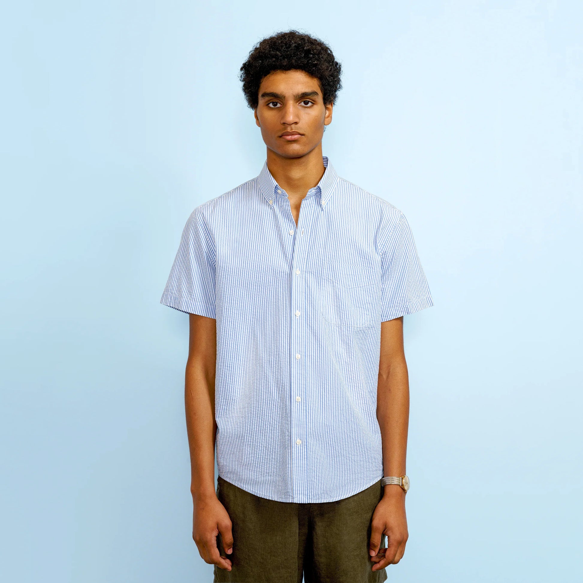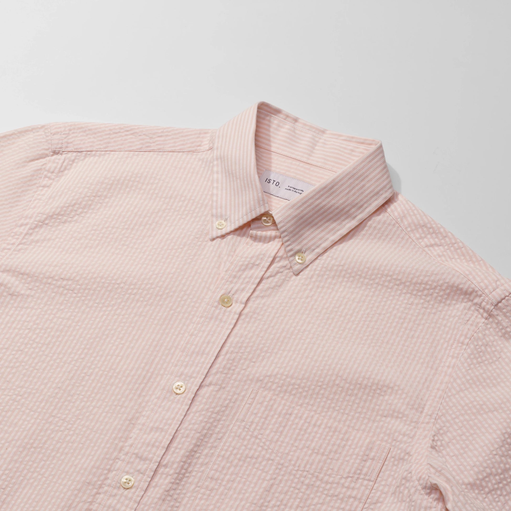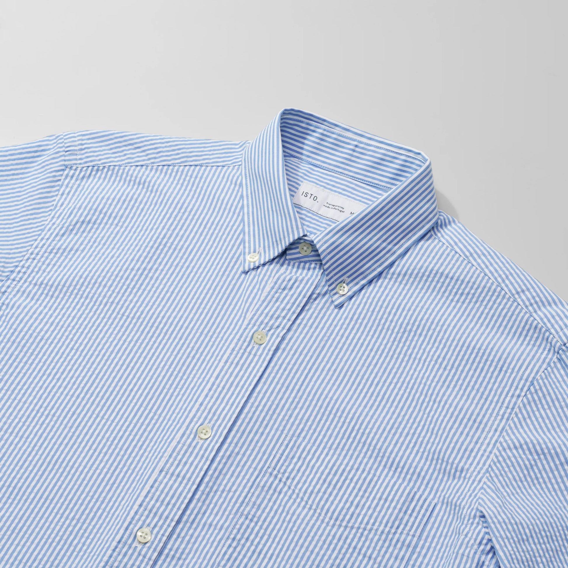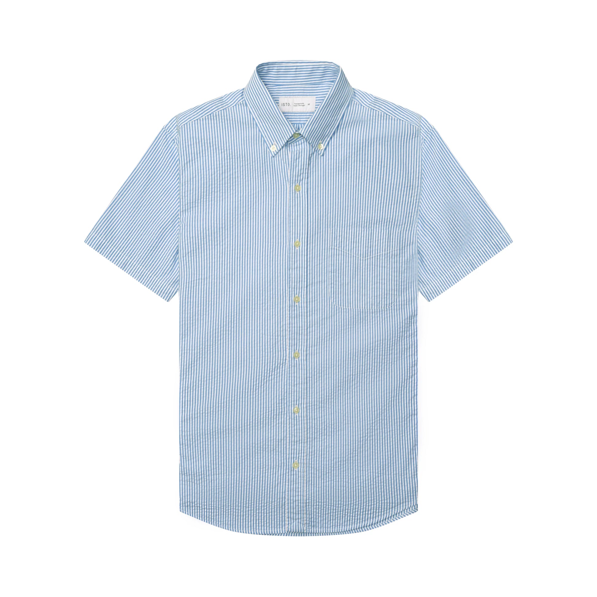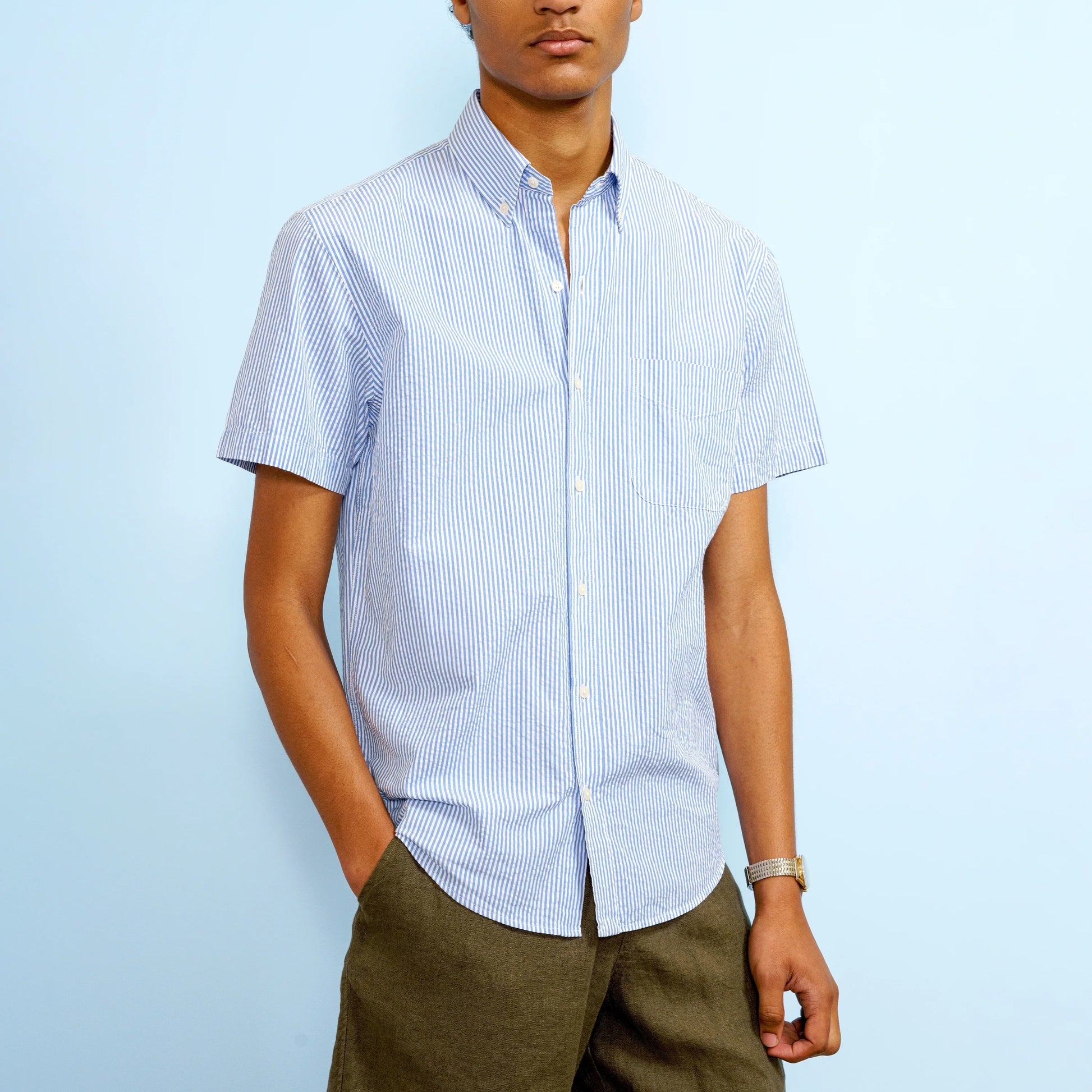 Cut from an organic cotton seersucker portuguese fabric, this perfectly short-sleeved shirt is light enough for the warm weather. All you have to do is add your favorite Chino Shorts and... bum-bum-bum.