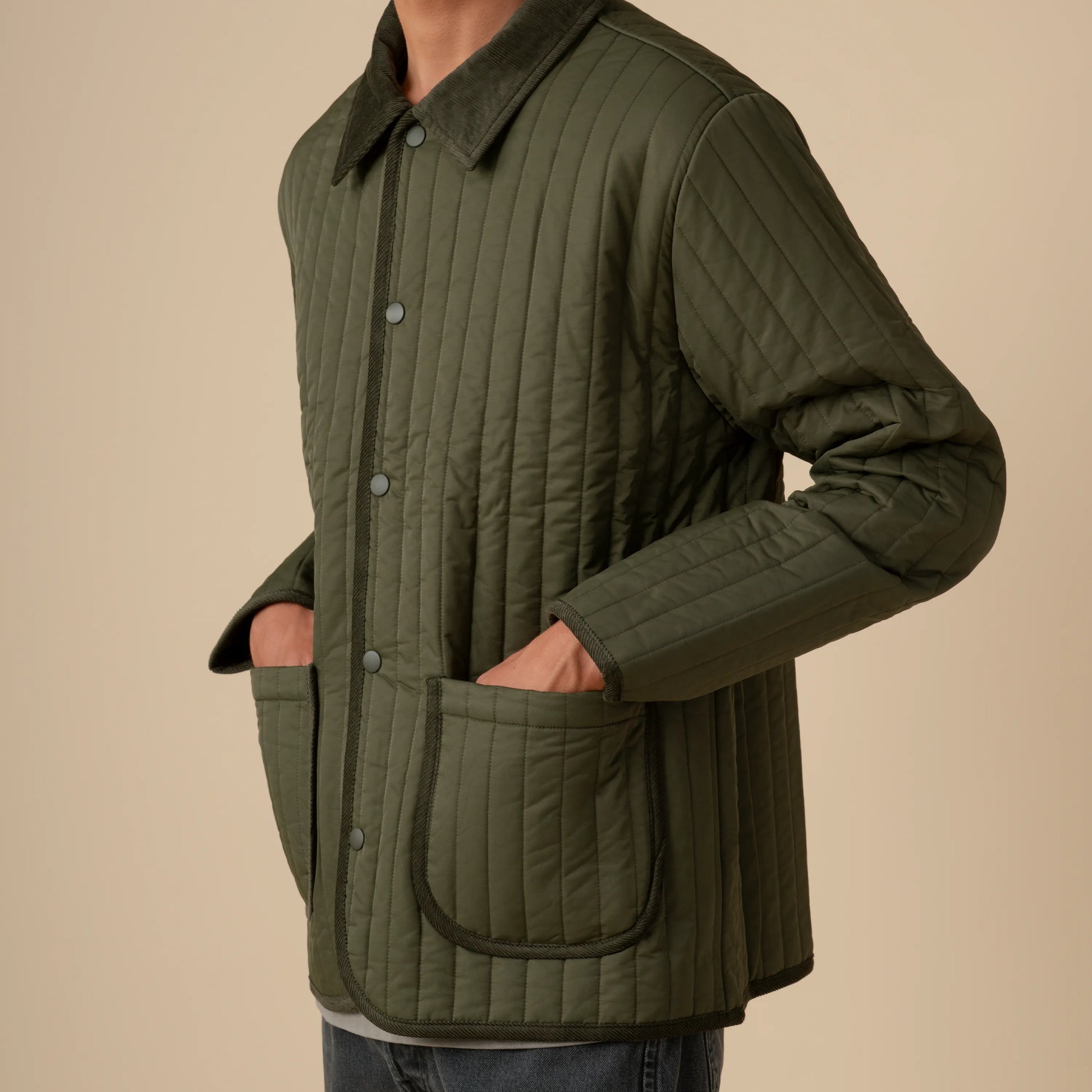 It features recycled poly padding for warmth and details using deadstock corduroy fabric from our Corduroy Shorts.