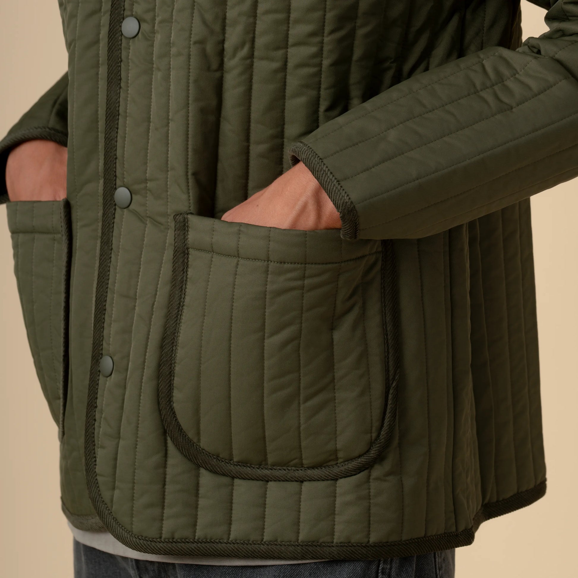 The Quilted Jacket is a smart blend of fabric innovation and design. Crafted with Amni Soul Eco®, a cutting-edge biodegradable polyamide yarn designed by Fulgar that decomposes in approximately five years in anaerobic landfill conditions, significantly faster than conventional fibers, and reduces the impact of microplastics in the environment. It maintains high performance throughout a garment's life, offering lightness and breathability to this piece.